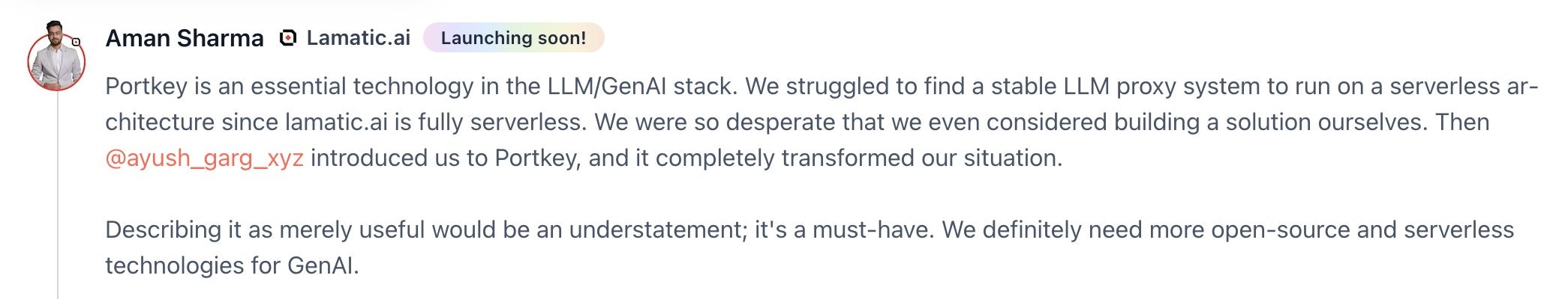 “Describing Portkey as merely useful would be an understatement; it’s a must-have.” - @AManInTech