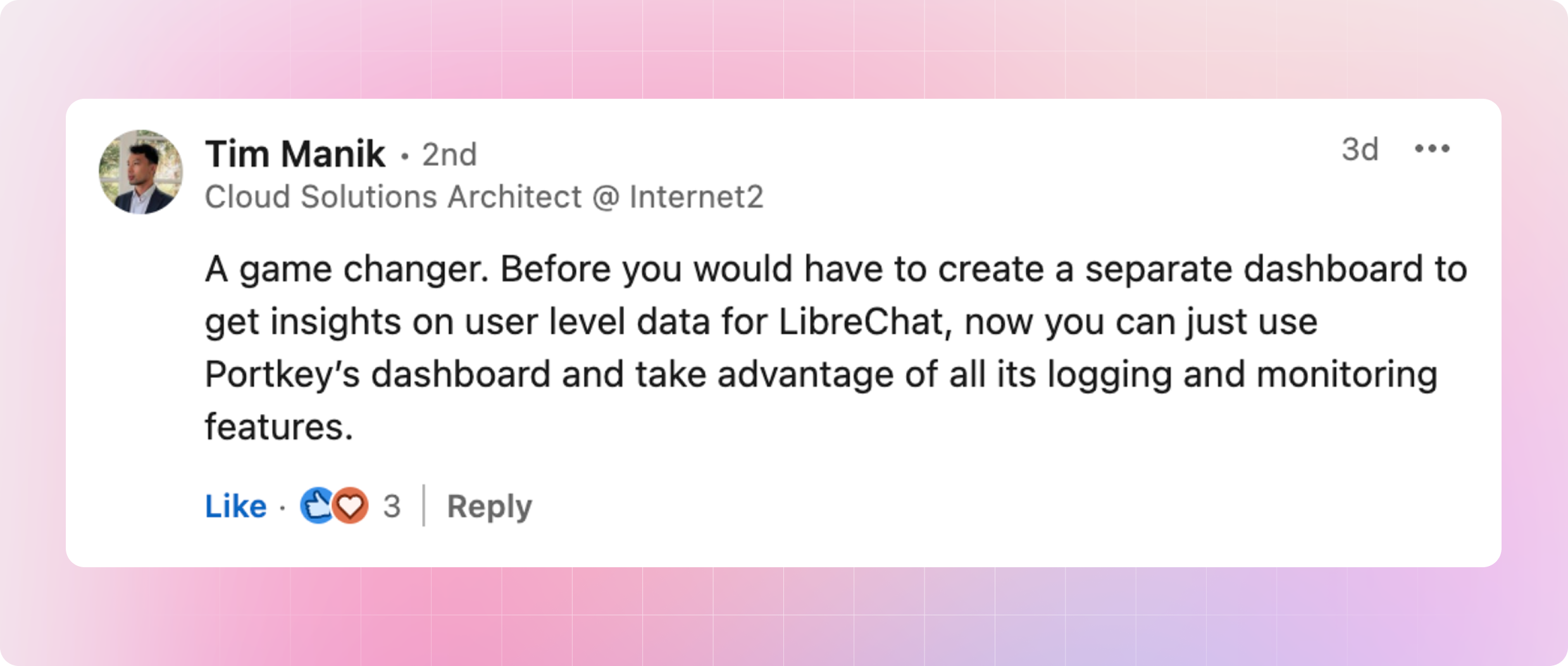 Many universities face similar challenges when adopting GenAI: fragmented provider access, budgetary uncertainty, and regulatory pressure. Portkey helps address these by sitting between institutional systems and model providers by offering a single API with granular usage controls, analytics, and guardrails. “The Internet2 NET+ Service Evaluation process for Portkey has been a demonstration of collaboration and efficiency,” said Stratos Efstathiadis, Senior Director of Research Technology Services at NYU. “The synergy among peer institutions ensures Portkey meets the diverse AI requirements of higher education.” 📅 Join the NET+ Portkey Launch WebinarPlatform